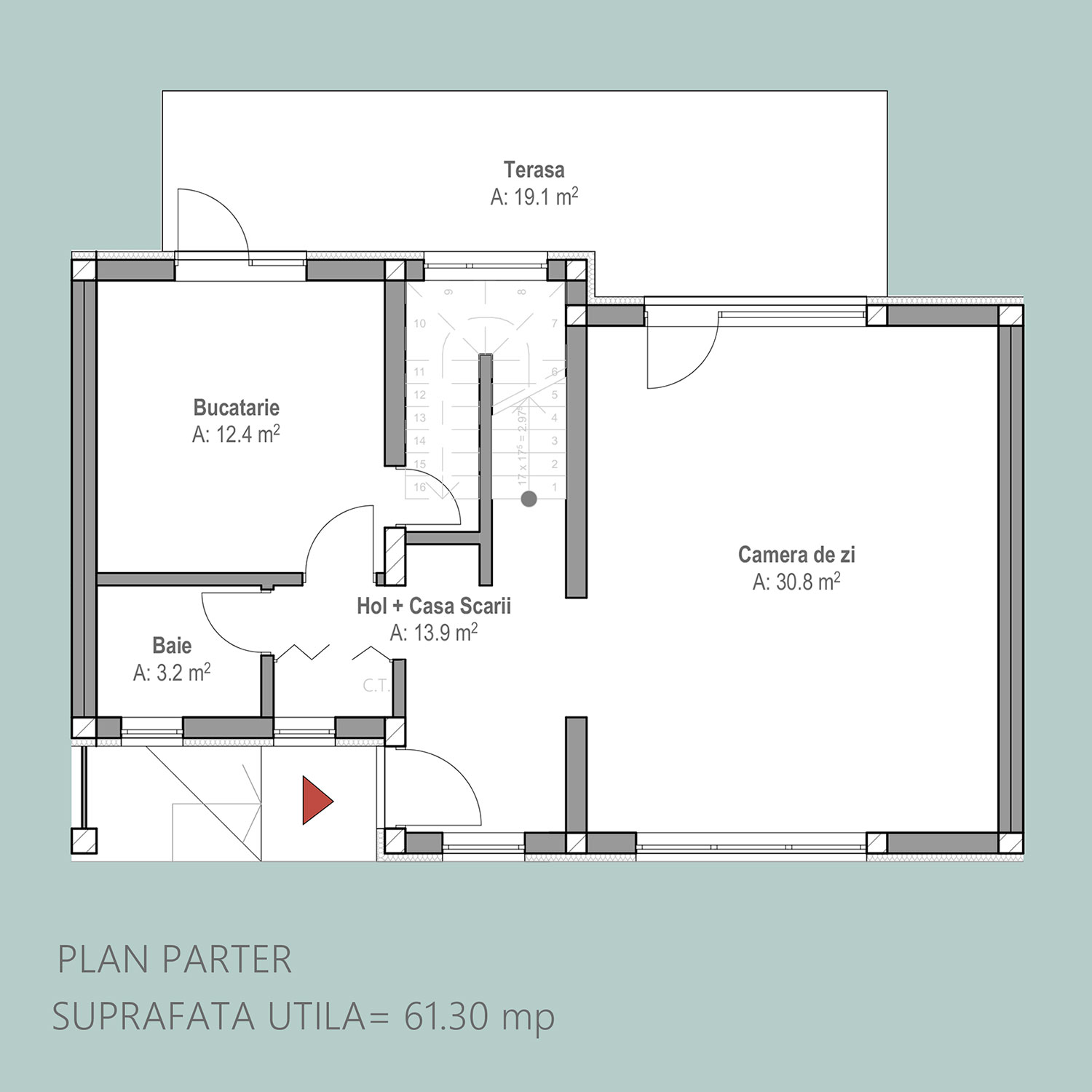 19.1m2 alocați terasei