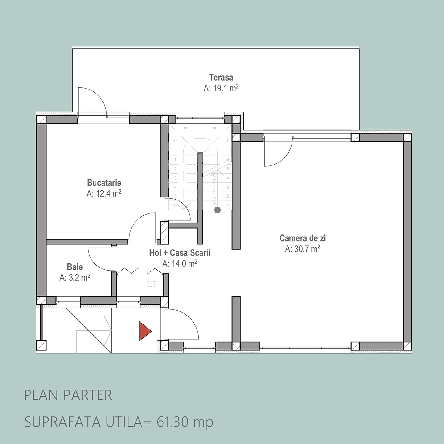 19.1m2 alocați terasei